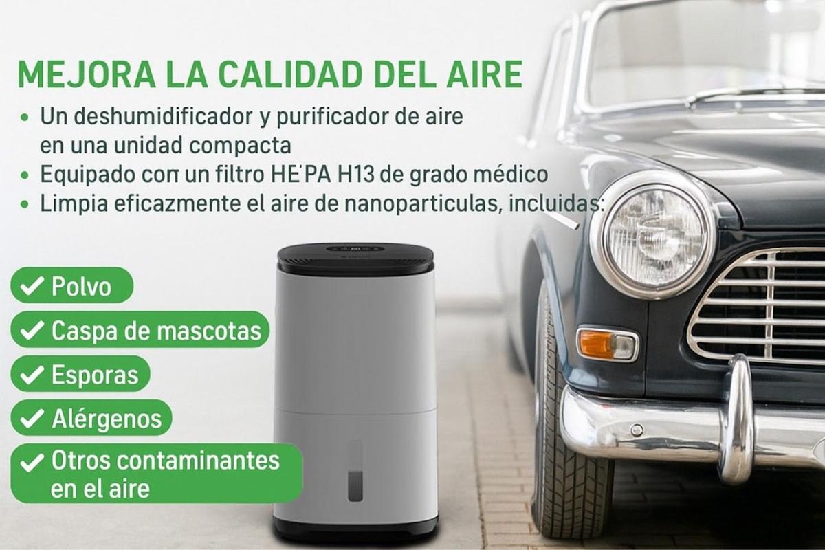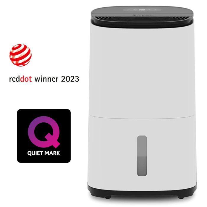 Este modelo combina deshumidificación y purificación del aire gracias a su filtro HEPA H13 de grado médico, con opción de filtro de carbón activado para eliminar olores. Su diseño moderno ha sido reconocido con el premio Red Dot y la acreditación Quiet Mark.